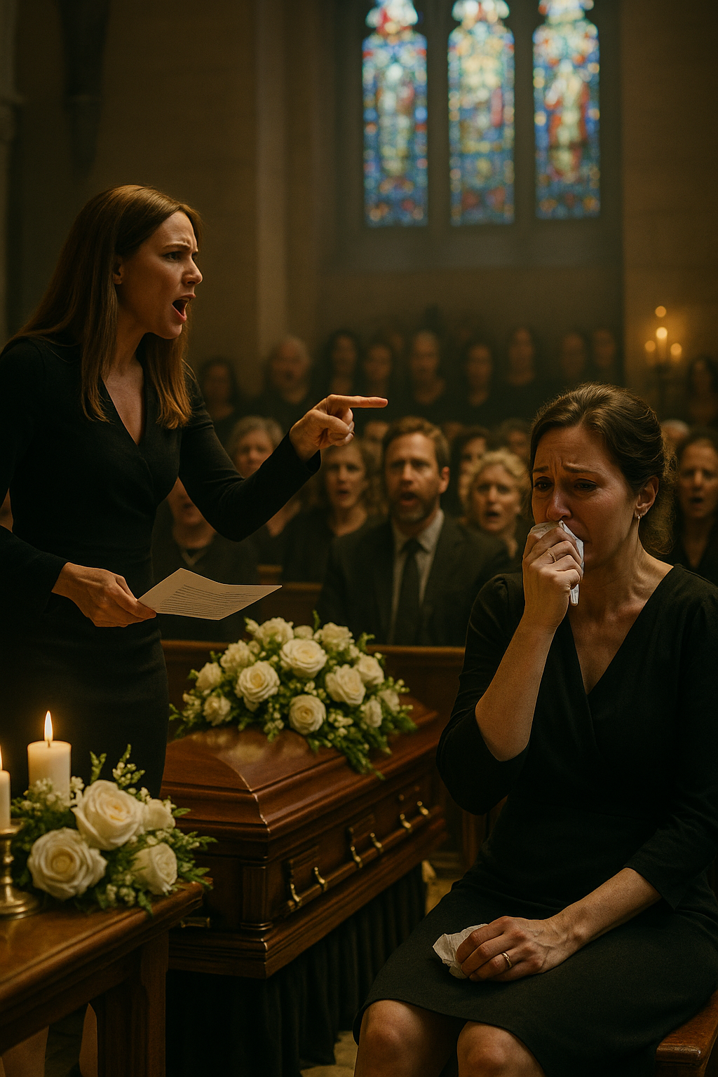 The church was hushed, the air thick with the smell of lilies and candle wax. The coffin rested at the front, draped in white roses, the minister’s voice steady as he spoke of a life well lived. I sat in the first pew, my hands folded tightly in my lap, my chest hollowed with grief. My children flanked me, their faces pale, their eyes swollen from crying. This was supposed to be a final goodbye, a dignified farewell. But then the heavy wooden doors slammed open, and a woman in…