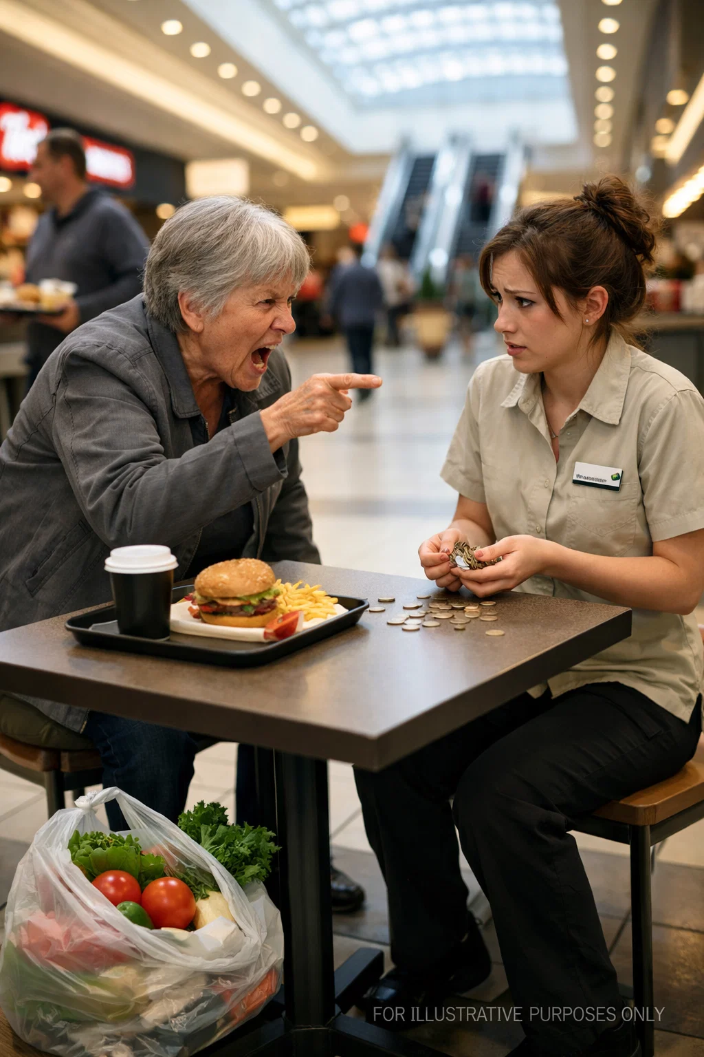 When I saw her, I thought my eyes were playing tricks on me. The hum of the mall around me faded into a blur—the clatter of trays, the laughter of teenagers, the faint echo of Christmas music piped through old speakers—and all I could see was my daughter, sitting alone at a sticky food court table, head bowed over a handful of coins. The fluorescent lights were unkind to her. They made her look pale and smaller than I remembered, the curve of her shoulders hunched inward like she…
