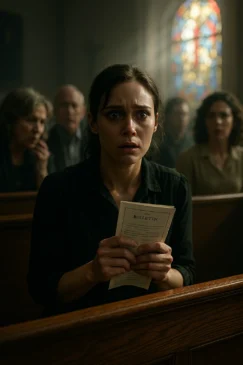 At first, I thought it must be a mistake. Some clerical error, a mix-up in the office. But the gasps spreading through the pews told me I wasn’t the only one who noticed. People were whispering, their heads bent toward each other like conspirators. The choir stalled mid-note, the pianist missed a key, and all at once, the sanctuary felt smaller, suffocating.