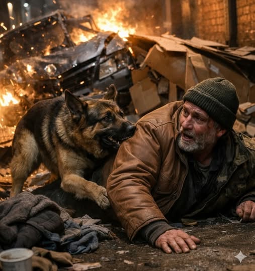 The night the story really begins, Tom had half a gas station sandwich in his pocket. Turkey and cheese, edges curling, bread a little stale. He’d saved it from lunch, telling himself he’d make it last till morning. He was sitting on an overturned milk crate behind Murphy’s Bar when he noticed the dog watching him from across the alley. Big shepherd mix, ribs faintly visible under dirty fur, one ear torn at the tip. The dog didn’t beg. Didn’t wag. Just watched with tired, careful eyes like he’d learned the hard way not to expect much from humans.