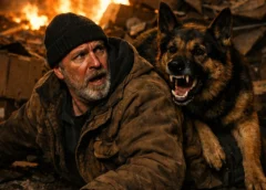 Tom started laughing. Not because it was funny. Because he was alive and his brain didn’t know what else to do. He reached up with trembling hands and grabbed the dog’s face.