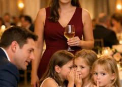 As if summoned by the weight of being observed, Evelyn turned. Her gaze landed on her daughters standing beside a stranger, and her expression moved quickly through surprise, alarm, and a familiar resignation that suggested this was not the first unexpected situation she had been asked to manage alone.