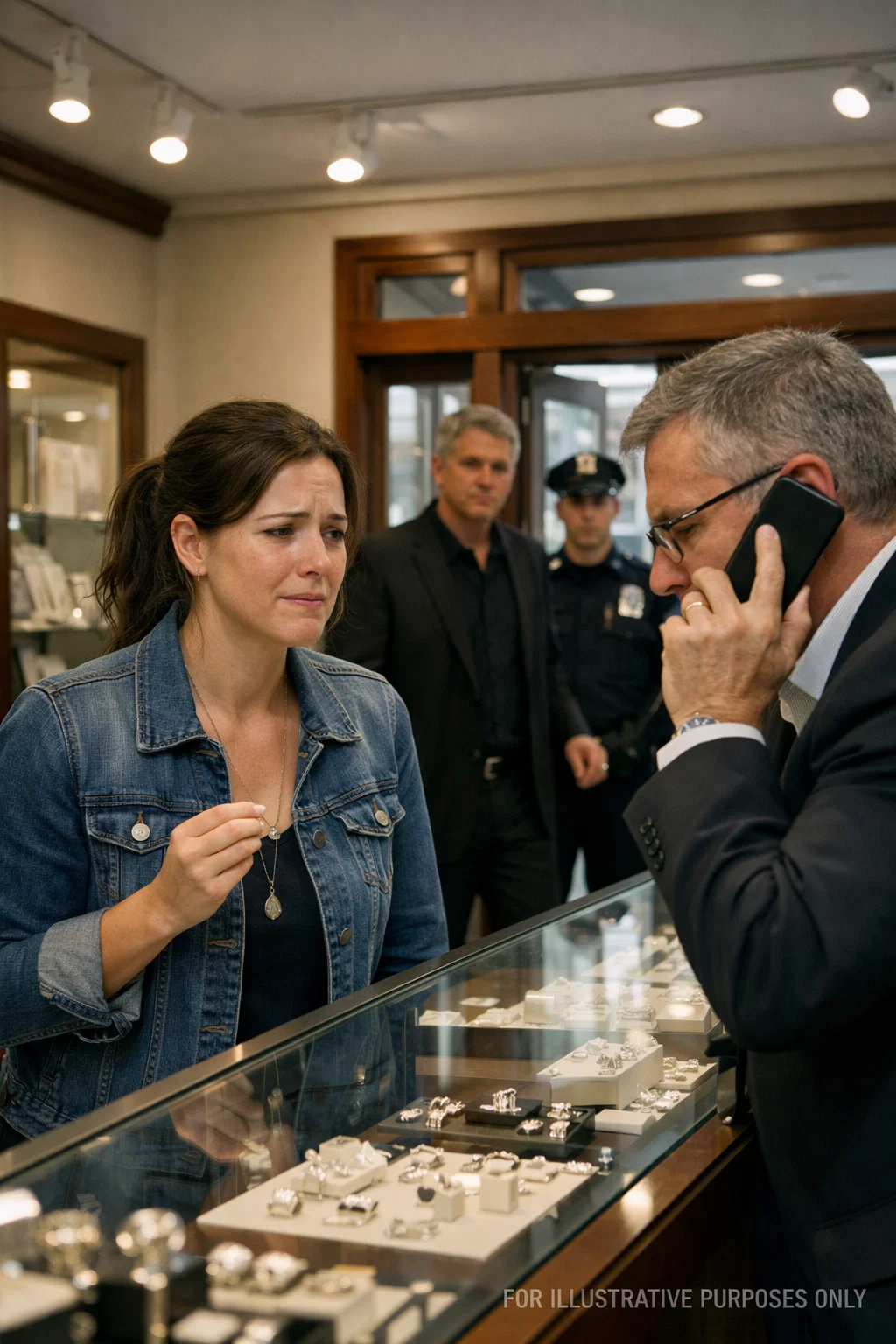The next morning I stepped into Carter & Co. Jewelers, a boutique wedged between a bank and a law office. A man in a gray vest looked up from behind the counter—thin, neat, maybe fifty, with a magnifying loupe hanging from his neck.