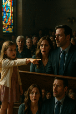 It happened on a Sunday morning, the kind that felt almost too ordinary to be memorable. The pews were packed, sunlight streaming through stained glass in brilliant reds and blues. The choir had just finished their hymn, and I was holding my husband’s hand, feeling comfort in the familiar rhythm of routine. Then I saw her—a woman I didn’t recognize, standing near the back. She looked nervous, clutching the hand of a little girl. And before I could make sense of it, the little girl’s voice rang out, clear and sharp in the hushed sanctuary.