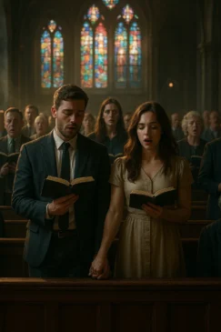 At first, I told myself I was mistaken. Maybe their hands had brushed by accident, maybe she was just adjusting her coat. But no. His fingers curled deliberately around hers, their palms pressed together, hidden low between them. It was intimate, unmistakable. My heart lurched, and the words of the hymn caught in my throat.