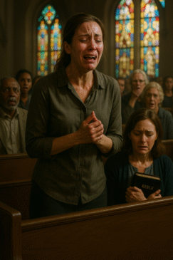 The morning was ordinary, the kind of Sunday I had lived through countless times before. Sunlight poured through the stained-glass windows, painting the pews in jewel tones. The choir’s voices lifted, the congregation swayed, and I bowed my head in prayer, expecting nothing more than scripture and song. But when the pastor asked if anyone wanted to share a testimony, my aunt—quiet, gentle, the one who always sat in the back—stood up. Her hands trembled, her voice quivered, but her words silenced the entire sanctuary: “I need to confess something I’ve carried for decades.”