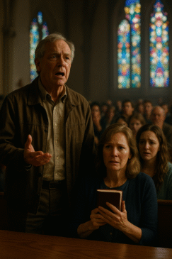 The buildup began when I noticed how restless he’d been that morning. His hands trembled during the hymns, his lips pressed tight during prayers. I leaned over and whispered, “Are you okay, Dad?” He nodded, but his eyes flicked toward the pulpit like a man about to step off a cliff. When the pastor invited testimonies, my father stood. My heart thudded in my chest.