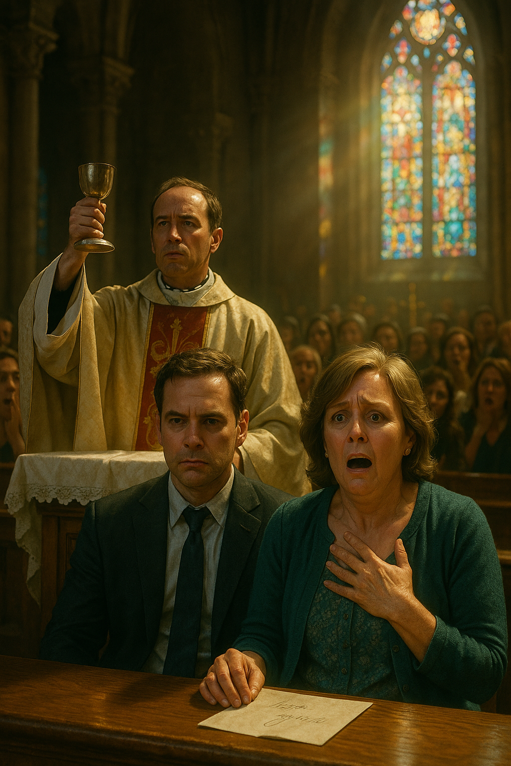 The congregation erupted into whispers, some people crossing themselves, others shaking their heads in disgust. The priest lowered his head, his hands trembling. “I had no choice,” he said softly, though his words felt hollow. My mother collapsed onto the pew, tears spilling down her face, and I sat beside her, numb. Communion had become confession, and instead of bread and wine, we were served betrayal.