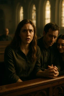 The climax was silent but deafening. Their heads were bowed, eyes closed, hands interlocked as though it was the most natural thing in the world. My throat tightened, rage and heartbreak tangling in my chest. Around us, people prayed quietly, oblivious to the storm exploding in my pew. I whispered his name once—“Daniel.” His eyes flickered open, and the guilt on his face was instant. He yanked his hand away, too quickly, like a child caught stealing. Julia’s lips curved in the faintest smirk before she bowed her head again.