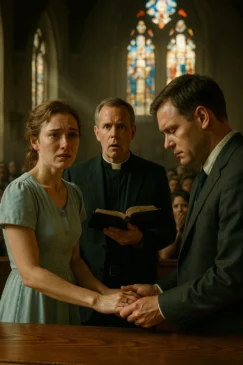 It was a Sunday morning, sunlight pouring through the stained-glass windows, filling the sanctuary with warmth. The smell of polished wood and lilies lingered in the air. The pews were full, friends and relatives gathered for what was supposed to be a blessing of our marriage—a renewal of vows in front of the congregation, something we’d agreed to do when the church invited couples to reaffirm their promises. I wore a pale blue dress, nothing extravagant, but I felt radiant, holding his hand as we stood at the altar. Mark looked handsome in his suit, though his jaw was tight, his expression unreadable.