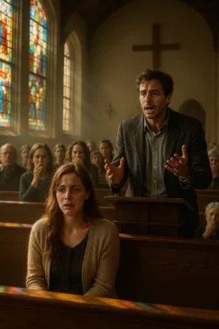 The hymn had just ended, sunlight streaming through stained glass, painting the pews in colors that felt holy. My hand was clasped in my husband’s, warm and steady, and I thought—for once—we were okay. He had been distant lately, but this morning he squeezed my hand tighter, and I felt hope. But then he stood. He let go of me, walked to the front of the church, and cleared his throat. His voice echoed through the sanctuary, and his words broke me in front of God and everyone I knew. “I can’t keep lying,” he said. “I’ve been unfaithful to my wife.”