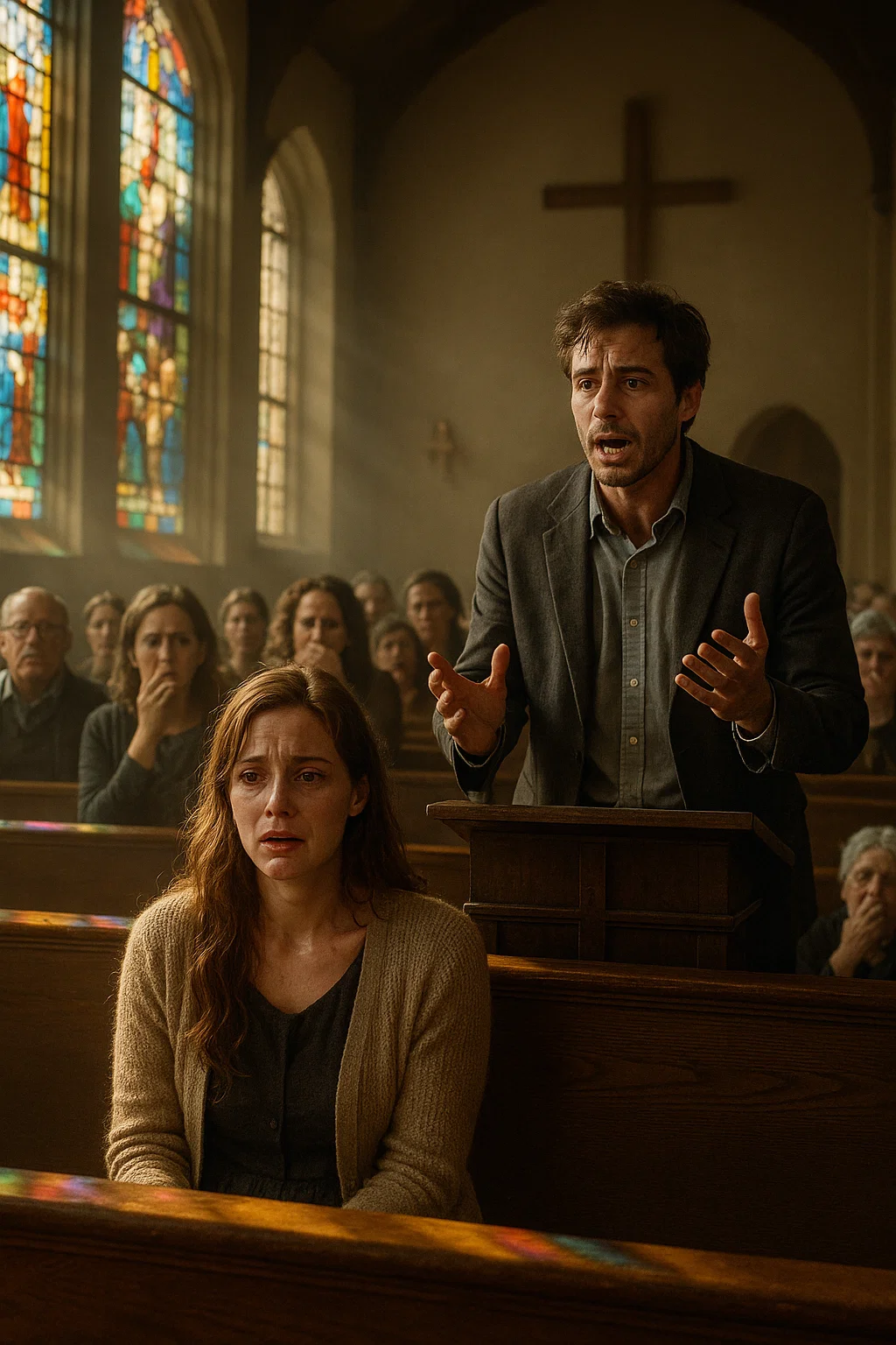 My hands clutched the wooden pew, nails biting into the varnish. My cheeks burned as whispers erupted around me, the congregation shifting, eyes drilling into me like spotlights.
