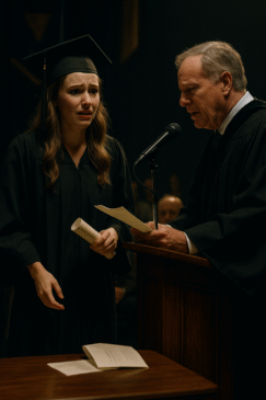 The auditorium buzzed with the energy of possibility. Caps and gowns rustled as students lined up, tassels swinging, proud families craning their necks from the stands. I should have been glowing with pride, feeling the weight of years of hard work lifting from my shoulders. Instead, my stomach churned with nerves I couldn’t explain. Something about the way my professor had asked to “speak briefly” during the ceremony had unsettled me.