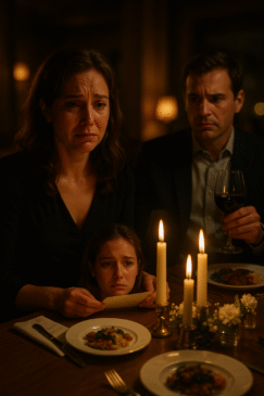 Guests at nearby tables glanced over, sensing the tension. My hands shook as I set down my fork, the food untouched. “You ended it,” I said, my voice breaking, “but you’re still carrying her with you. You carry her into our dinners, into our anniversaries, into us.”