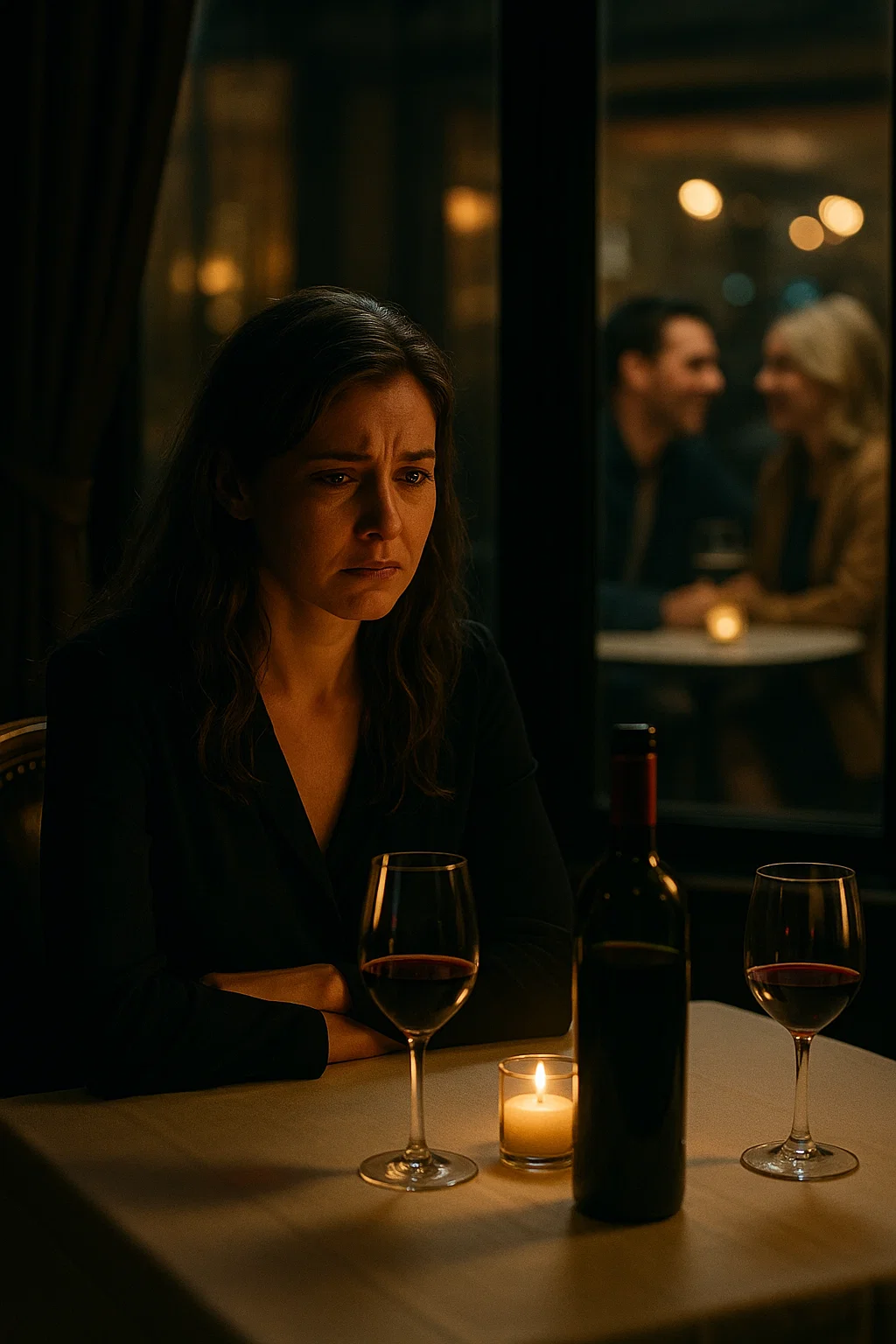 The build-up was filled with small doubts I tried to ignore. He insisted on choosing the restaurant himself, wouldn’t tell me the name until the day of. He told me to meet him there at seven, that he’d come “straight from work.” But at 7:15, I was still alone. At 7:30, I was checking my phone obsessively. And at 7:45, the waiter approached with that smile and that bottle of wine.