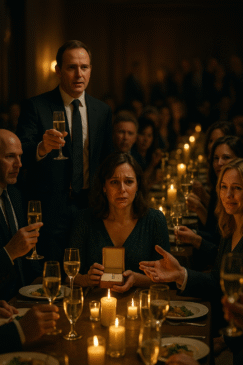 The glass in my hand trembled. I blinked, confused, certain I had misheard. But the gasps around the table told me I hadn’t.