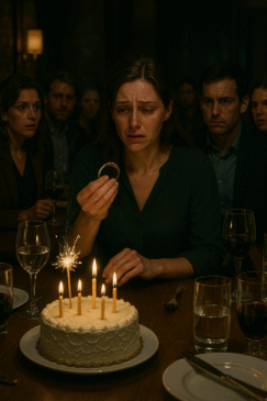 The room spun. My cake sat untouched, candles still smoking, as my birthday collapsed into betrayal. My best friend squeezed my hand under the table, her eyes wide with pity. But pity couldn’t stop the tears burning my cheeks. “You gave me her gift,” I whispered, broken. “You meant to give this to her.” He buried his face in his hands, shame written across his posture.