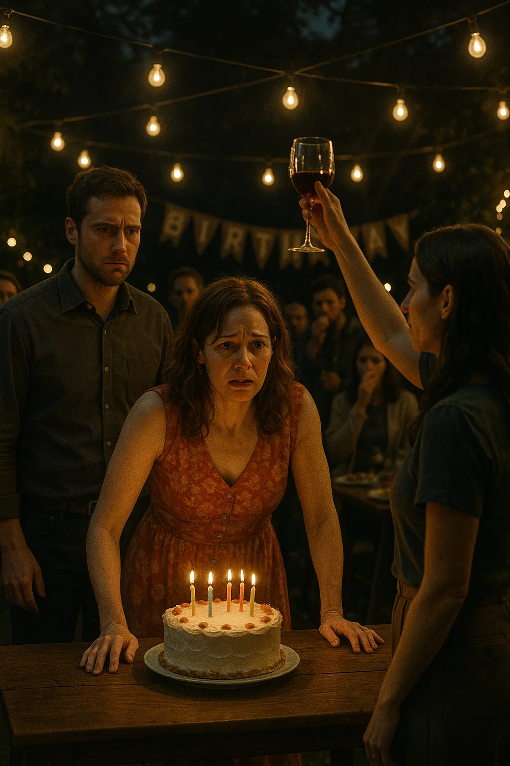 The party ended in chaos. Guests left quickly, murmuring apologies they didn’t owe me. My husband stormed out, his excuses trailing behind him. And I sat there, staring at the candles that had melted down to nothing, thinking about the wish I never even got to make.