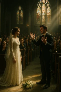 The build-up was flawless. The bridesmaids lined up, the groomsmen straightened their ties, the flower girl scattered petals with wide-eyed concentration. The photographer clicked relentlessly, capturing what was supposed to be the happiest day of Anna’s life. The congregation hummed with anticipation, the minister guiding them step by step toward forever. And then came the question, the pause, the groom’s shaking hands. A murmur rippled through the pews as he turned to face the crowd, his eyes wet, his jaw clenched.