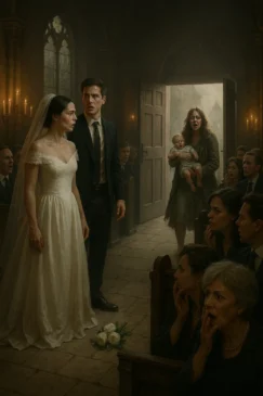 The church erupted in gasps. My bouquet slipped from my hands, the roses scattering across the marble floor. Daniel froze, his mouth opening and closing but no words coming out. I felt every eye on me, burning holes into the silk of my dress, waiting for my reaction. The baby stirred in her arms, letting out a soft cry that made my stomach twist. Because God help me, the child had Daniel’s eyes. The same deep brown eyes that had once made me feel safe now stared back at me from the face of a child who shouldn’t exist.