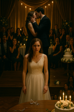 The room erupted. My glass slipped from my hand, shattering on the floor. Guests gasped, some screaming, others covering their mouths in disbelief. My heart thundered, my body frozen, as I stared at the man I had just promised forever to. His lips still pressed against hers, his hand cupping her face like I wasn’t even there.