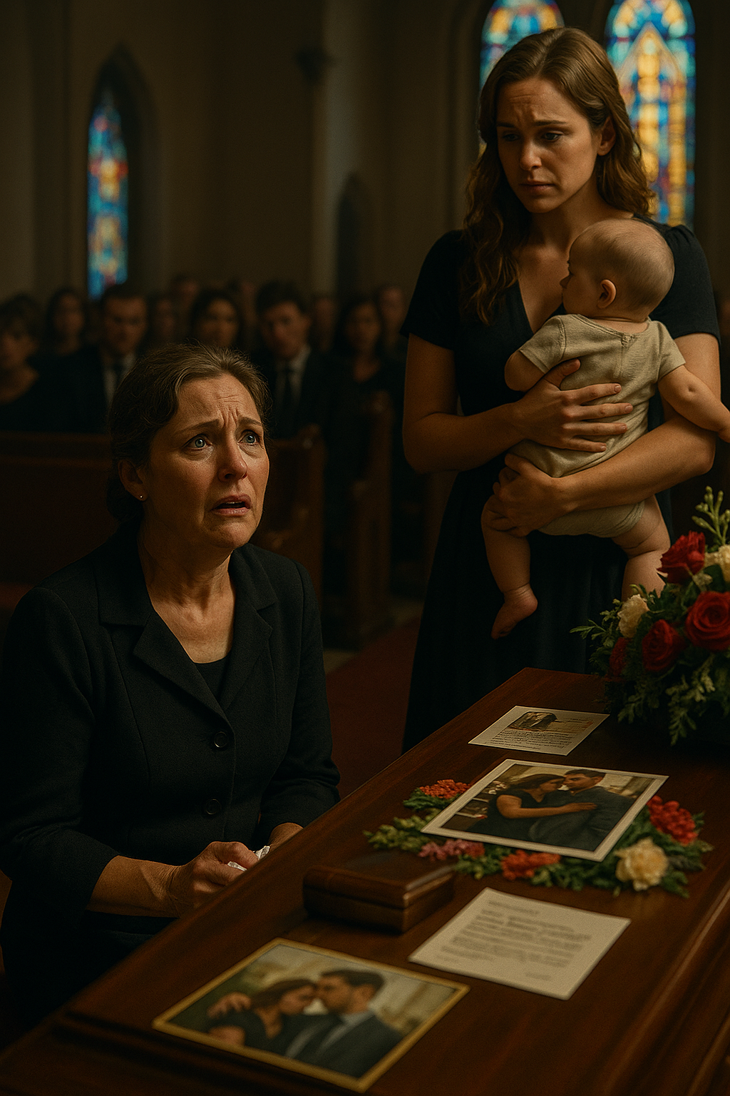 The air in the church was heavy with lilies and grief, the kind of thick silence that clings to your skin and makes you shiver even when you’re surrounded by people. My husband lay in the casket at the front, his face calm in a way it rarely was in life. I had spent days preparing for this moment—picking his suit, smoothing over family tensions, practicing how I would stand tall as his widow. I thought I knew the worst of the pain already. But I didn’t. The pastor’s voice…