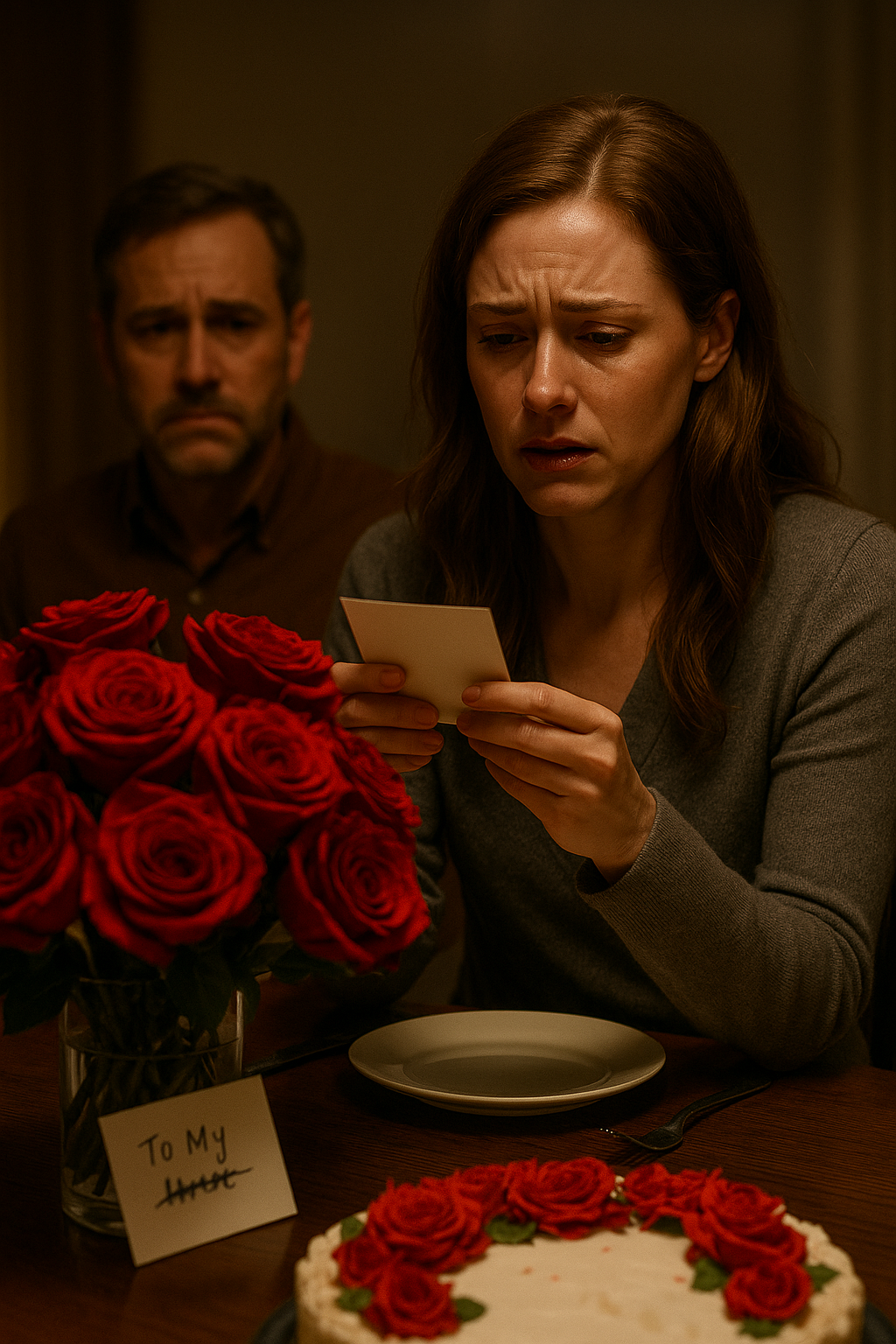 The bouquet was stunning—dozens of red roses, delicate baby’s breath tucked between, wrapped in silk ribbon with a tiny card nestled inside. It arrived at my office just before lunch, and my coworkers crowded around, teasing me, their voices full of admiration. I smiled, blushing, because flowers always meant something in our marriage. They were his way of saying “I love you,” his way of reminding me that we still had magic after years of routine. But when I opened the card, my heart stuttered. The handwriting was his, unmistakable.…