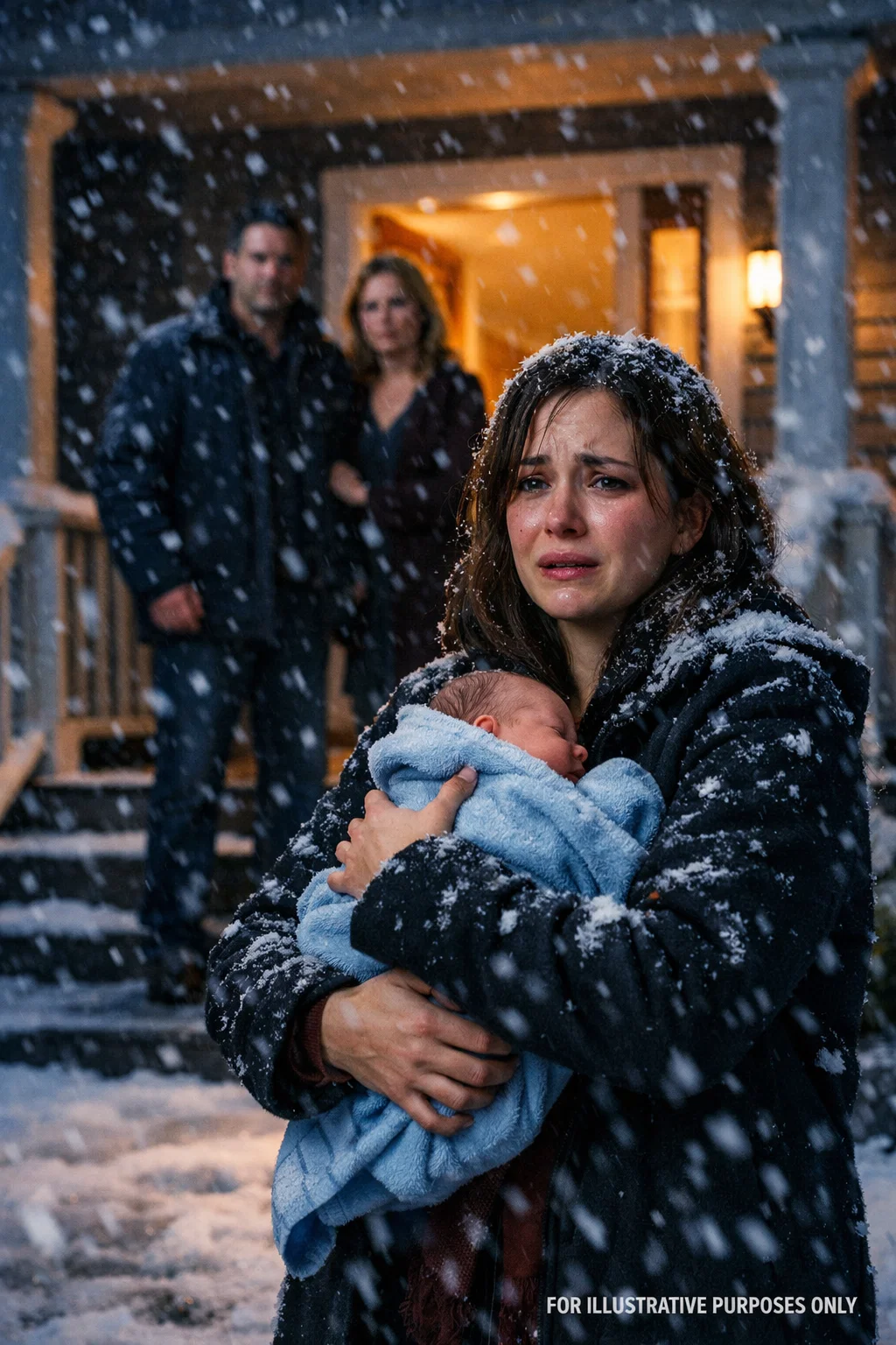 If you were standing in the snow with a newborn in your arms—door slammed behind you—what would you do?