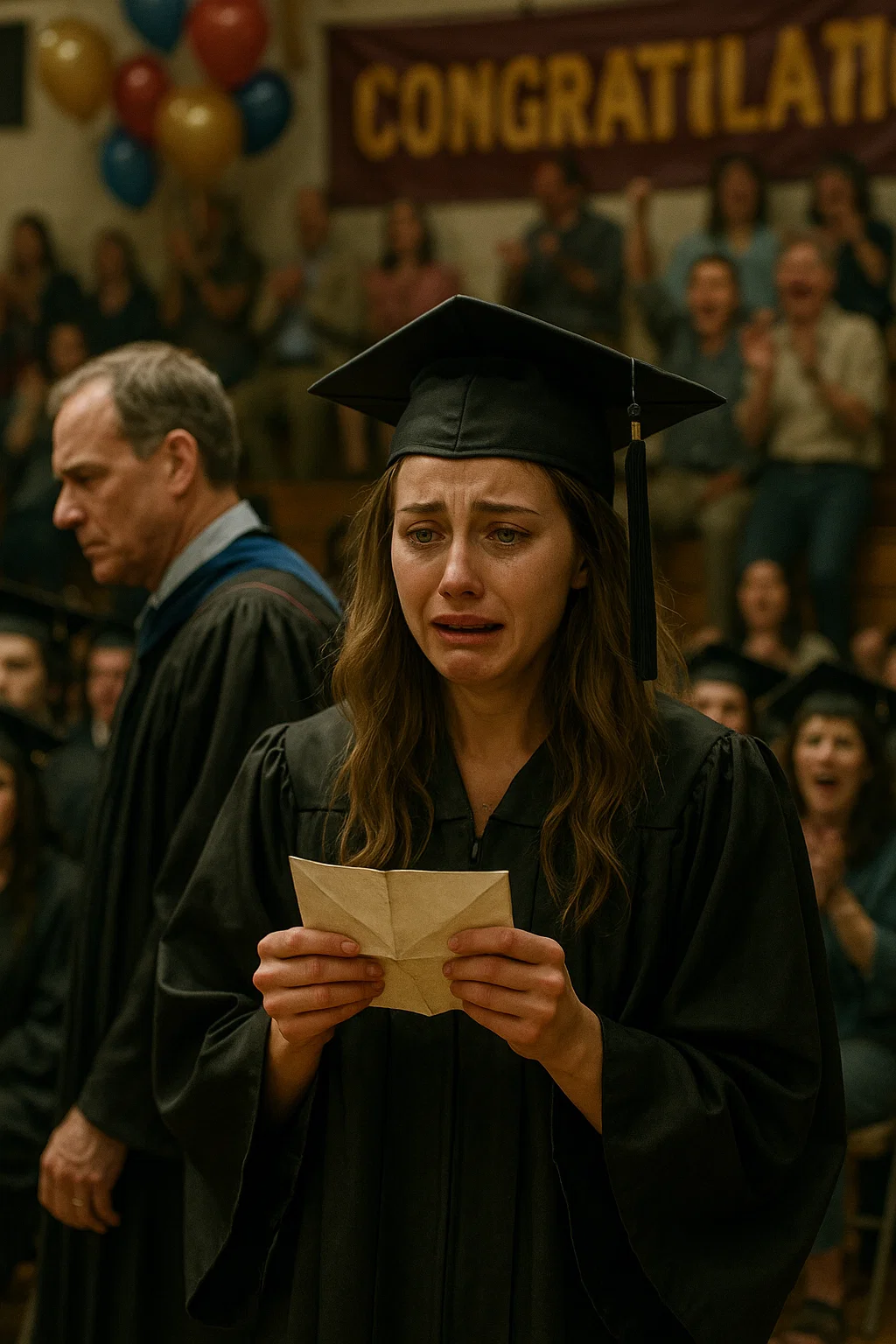 The gymnasium was packed, banners waving, families cheering as our class marched in with our caps and gowns. The smell of flowers and fresh paper programs filled the air, the buzz of excitement electric. I smiled, searching the crowd for my parents, waving when I spotted them in the bleachers. It was my day. My moment. I thought nothing could overshadow it—until my teacher pressed an envelope into my hand and whispered, “This is from your real father.” The words hit me like a thunderclap. My real father? My fingers…