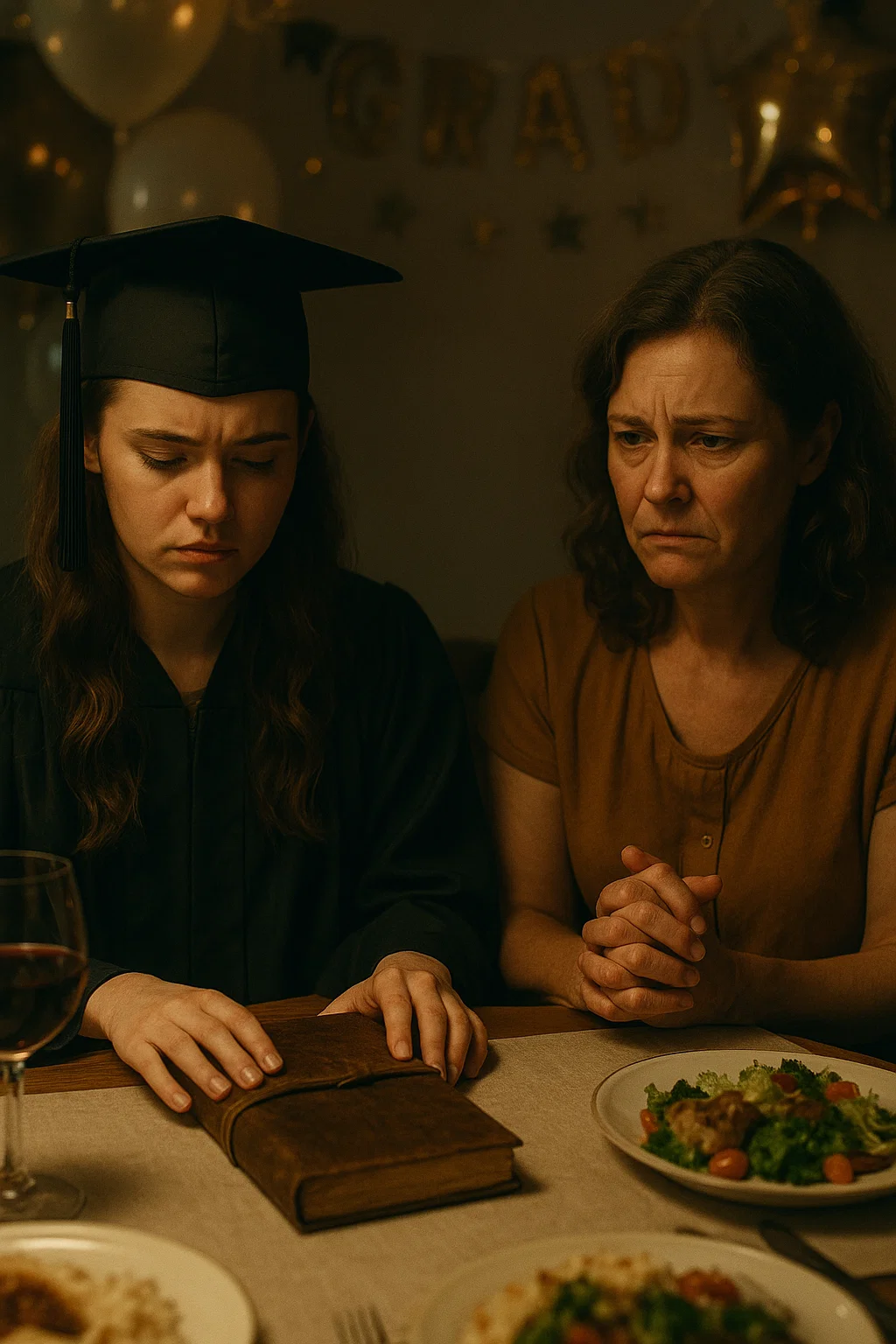 The moment she pressed the worn leather journal into my hands, the noise of the graduation crowd faded. I should have been celebrating—cap slipping down my hair, diploma clutched tight, friends shrieking for photos. Instead, I stared at the book my mother slid across the table at our family dinner, her eyes heavy, her smile tight. “It’s time you knew,” she whispered. My fingers tingled against the cracked spine, the gold edges worn away. I didn’t know then that inside those pages was the truth about my life, about her,…