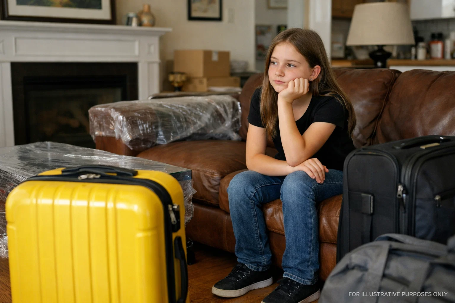 Emma arrived with Aunt Jenna. Her suitcase rolled behind her, small and navy blue. She looked hesitant, her shoulders hunched, her eyes darting from the house to the boxes.