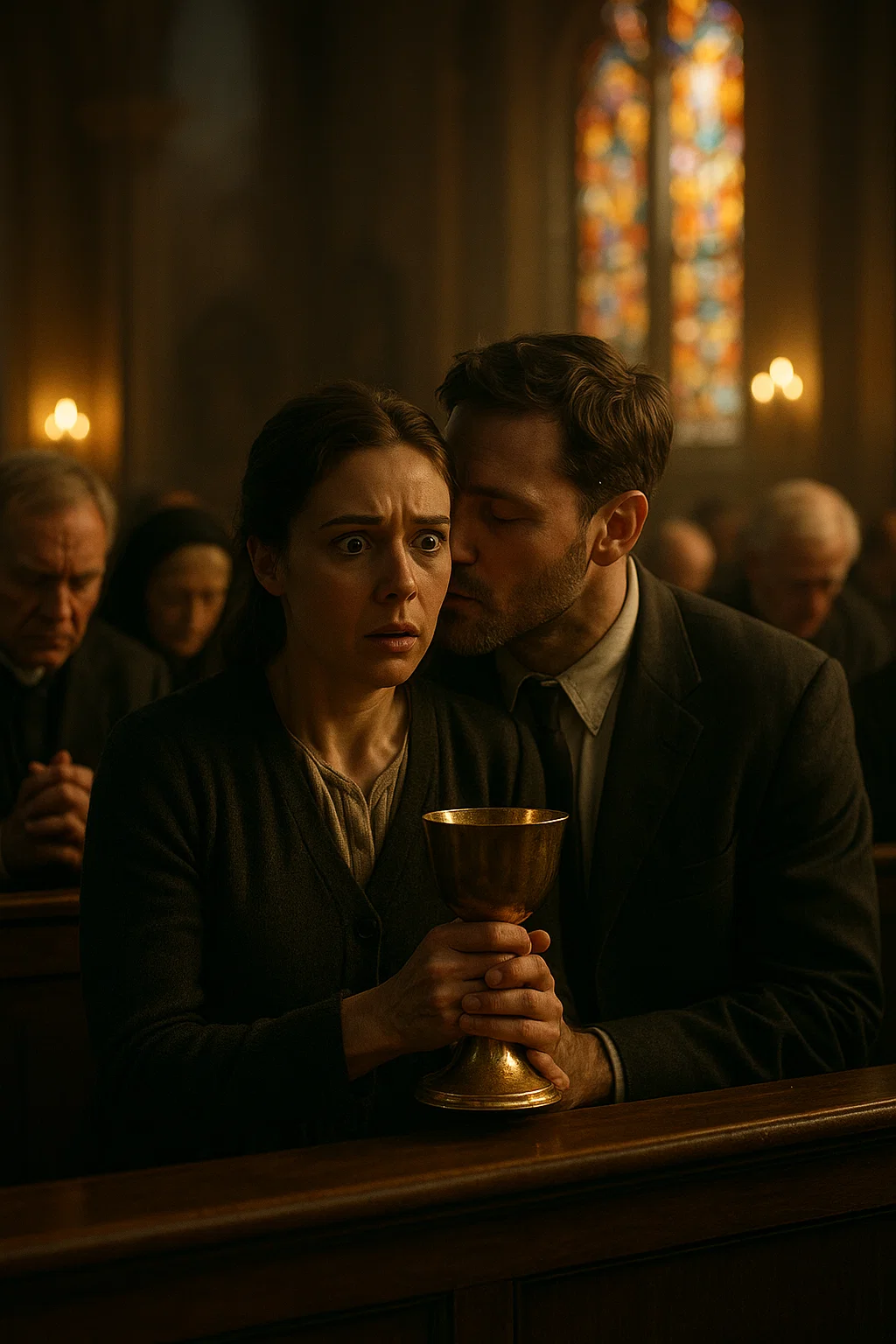 The chalice was still warm in my hands when my world collapsed. I had just taken the bread, the wafer dissolving on my tongue, when my husband leaned close enough that his breath brushed against my ear. His whisper was soft, almost reverent, but the words made my knees buckle.
