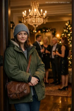 I stood at the bottom of my parents’ front steps, shivering in a thrift-store coat I had selected with the precision of a method actor. The buttons were mismatched—one tortoiseshell, one black plastic. The hem was fraying just enough to suggest a threadbare existence. It smelled faintly of someone else’s menthol cigarettes and cheap laundry detergent, a scent that clung to me like a second skin.