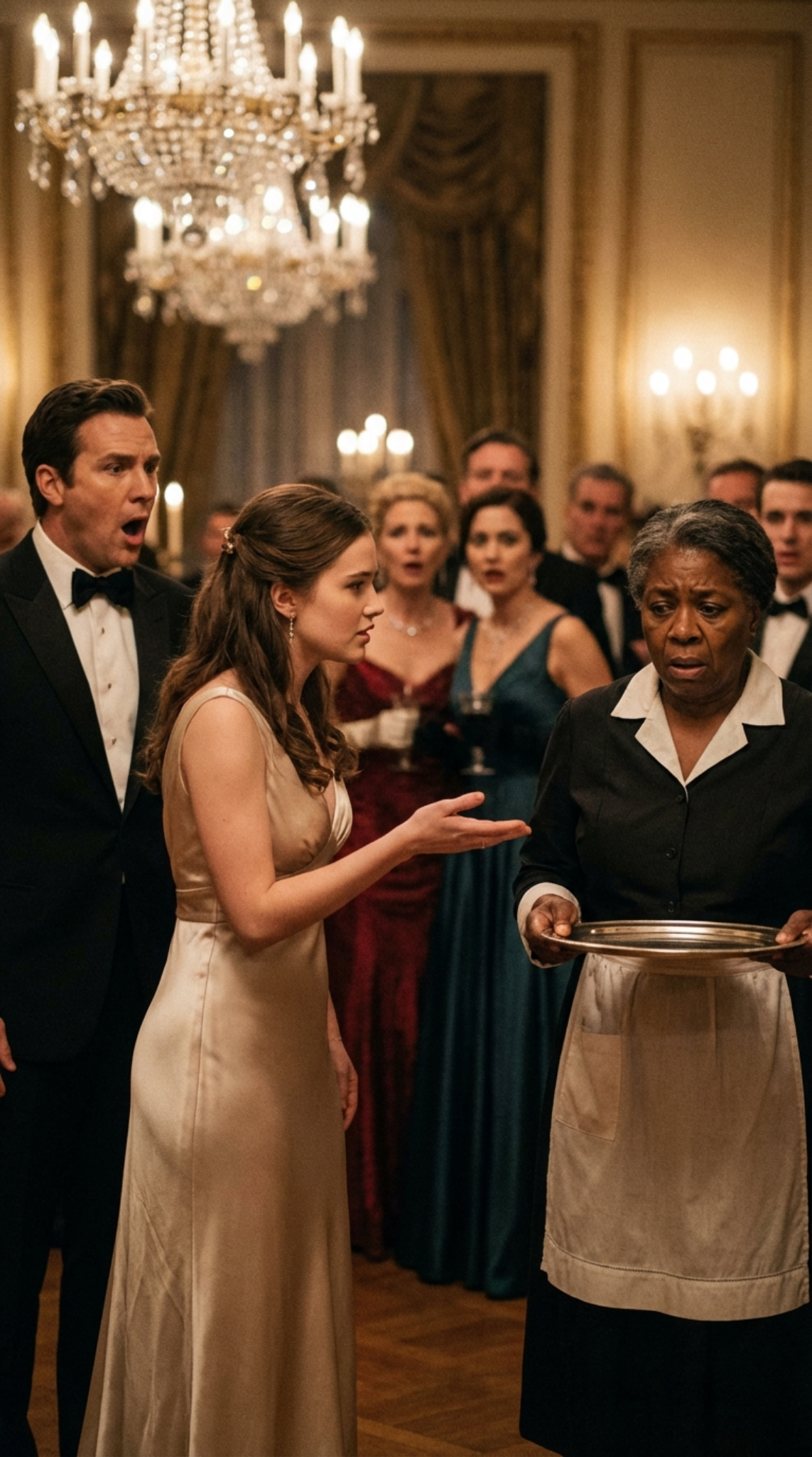The maid stood still, unsure whether to move or remain invisible as she had been trained to be. Her hands were steady, but her eyes held a quiet awareness, like she had always known how rooms like this worked without ever belonging to them.