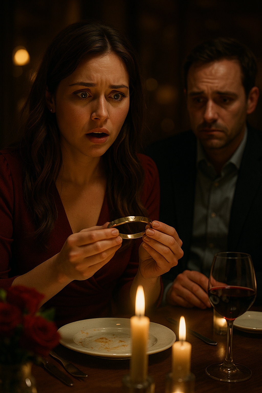The box was velvet, small and elegant, the kind that makes your breath catch before you even open it. He slid it across the table at our anniversary dinner, candlelight flickering in his eyes. “For you,” he whispered, his voice warm, almost nervous. My chest tightened with excitement as I lifted the lid. Inside lay a delicate gold bracelet, gleaming against the velvet. I smiled, tears pricking my eyes—until I turned it over and saw the engraving. Tiny letters etched into the metal. Not my initials. Hers.