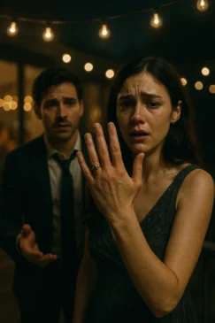 Inside, the party roared on—music thumping, glasses clinking, voices cheering for a love story that had already crumbled before it began. And outside, on that balcony, I realized something brutal but clear: the proposal wasn’t for me. The ring, the promise, the forever—it had always been meant for her.