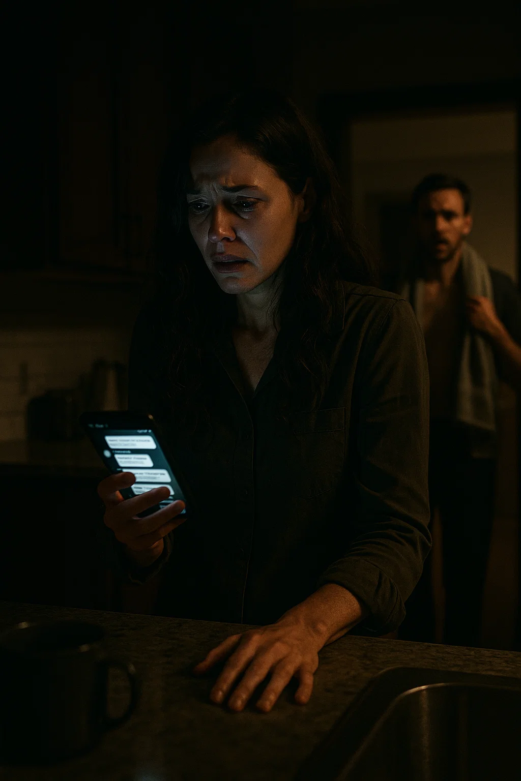 The climax came when he walked back into the kitchen, towel slung around his shoulders, water dripping down his neck. He froze when he saw me holding his phone, the group chat wide open. His face drained of color. “What are you doing?” he asked, his voice tight. My own voice shook as I whispered, “Reading what my husband really thinks of me.” His eyes flicked to the screen, then back to me. “It’s not what it looks like,” he stammered. I laughed bitterly. “It’s exactly what it looks like. It’s jokes. It’s lies. It’s her.” My finger hovered over the photos he’d sent. “And you didn’t even keep it private—you made it a game for your friends.”