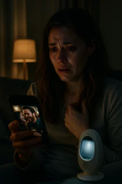When I clicked on that livestream, I wasn’t looking for him. I was just killing time on a quiet Thursday night, scrolling aimlessly through my phone while the baby monitor hummed softly beside me. My husband, Eric, had told me he was away on a three-day work trip in Chicago, some conference about “networking opportunities” and “corporate partnerships” I only half-listened to because I trusted him. But then I saw it—just a blur at first, a familiar silhouette passing in the background of a stranger’s video. My stomach dropped. I froze, rewound, and there he was. My husband. Not in Chicago. Not at a conference. In a crowded bar, smiling, a woman’s hand brushing his arm.