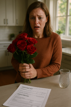 It’s been nearly a year since that day. The marriage is over, the papers signed, the house empty but for my things. I kept the slip, folded in my drawer, not as a wound but as a reminder. Because betrayal rarely comes hidden in shadows—it arrives at your doorstep, wrapped in silk, tied with a ribbon, smelling like roses.