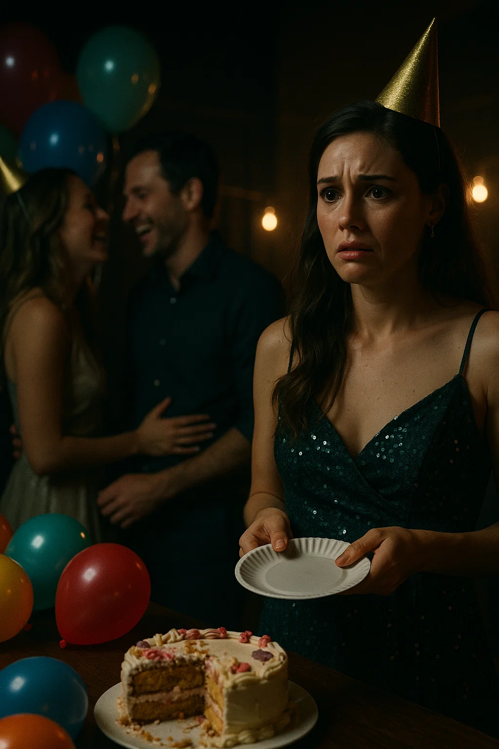 When I first walked into the darkened room and heard the explosion of “Surprise!” I almost cried. The balloons, the streamers, the cake with my name written in pink icing—it was everything I’d secretly hoped for. My husband stood in the center, grinning proudly, his arm stretched wide like he was presenting me with the world itself. For a moment, I thought I was the luckiest woman alive. But then my eyes caught hers. And I realized the party wasn’t really about me at all.