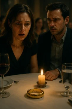 He reached for his glass of wine, and as he did, his wedding band slipped off his finger. It clattered against the table, rolling until it landed in front of me. A simple gold band, worn with years of use, now staring at me like it carried a secret I wasn’t supposed to see.