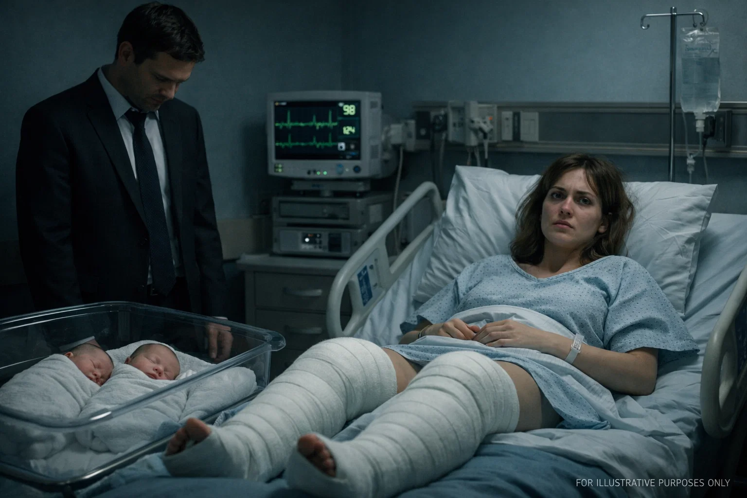 It was 3:57 AM inside St. Claire Medical Center. The lights were dim, the machines hummed a quiet, rhythmic lullaby, and the city outside felt distant and indifferent. I lay in a hospital bed, exhausted, my body stitched together after an emergency C-section that nearly cost both my twins and me our lives. My abdomen felt split open, my breath shallow, my mind fighting the fog of anesthesia to stay present.