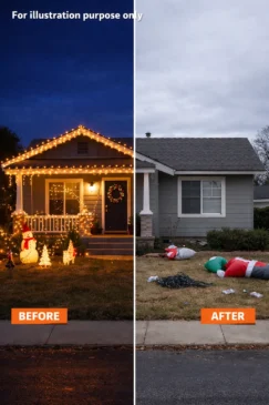 The roof was bare, the porch rails empty. The wreath I’d carefully wired to the front column had vanished. The plastic candy canes that had lined the sidewalk were snapped and tossed in a pile by the bushes. Even the twinkle lights wrapped around the maple were ripped down, leaving scraped bark. In the middle of the yard lay my long green extension cord, cut clean in half.