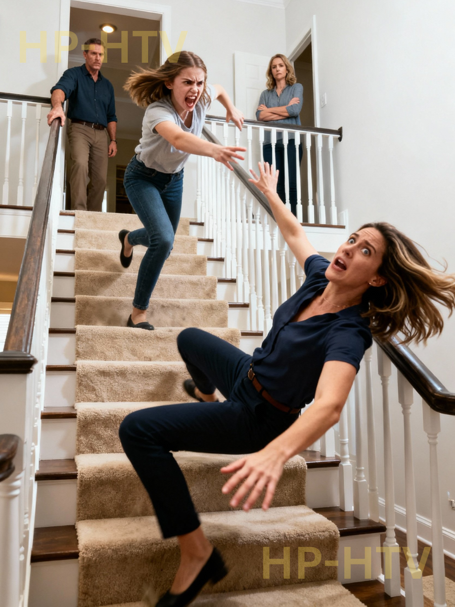 She moved toward me. I stepped back without thinking, my heel catching on the edge of the hallway runner. For a split second, everything felt weightless. Then her hands came up—hard—and shoved me square in the chest.
