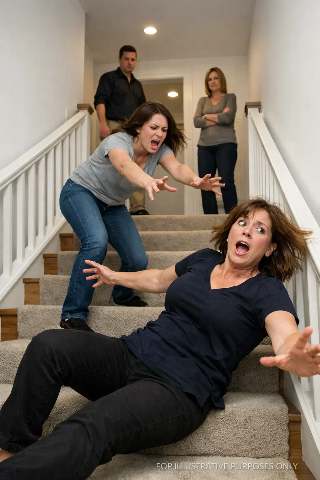 My heel caught on the edge of a hallway runner. For a split second, I felt weightless. Then I saw Vanessa’s hands come up and she shoved me hard in the chest. The world tilted. I was falling backward down the stairs. As I climbed a thousand times as a child, my head cracked against the edge of a step and another.
