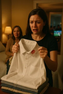 I pulled the shirt from the pile, holding it up between us. The lipstick gleamed like fresh blood against the white cotton. “This isn’t a mistake,” I said. “This is proof.”