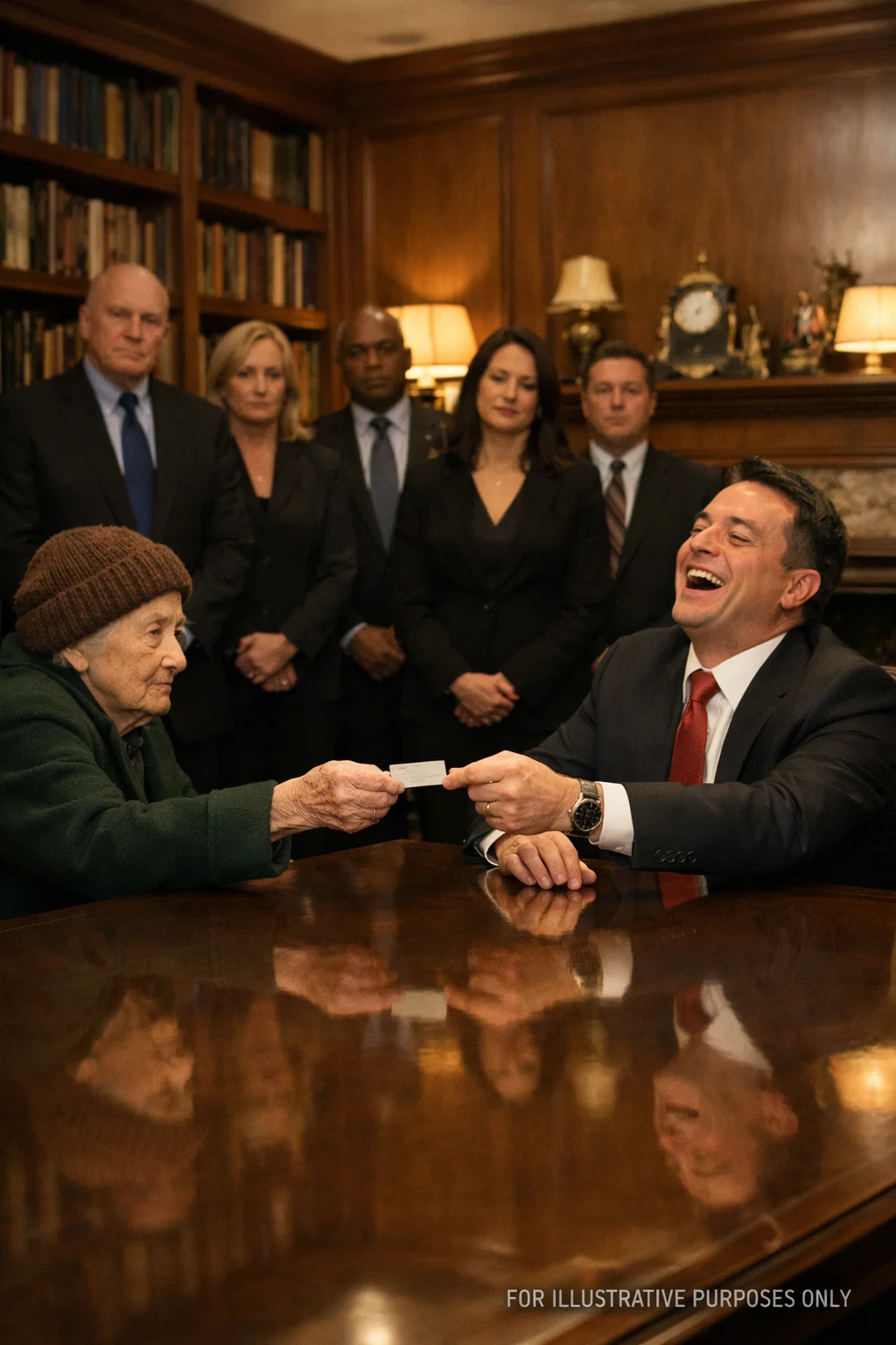 Tension rose when Charles refused to help and called for security, convinced she didn’t belong there. The room grew uncomfortable as murmurs spread, fueled by assumptions about her age and capabilities. Margaret, still composed, gently spoke up. She explained that many years earlier, she had worked late nights cleaning offices in that same building, back when the bank was owned by Charles’s family. Her voice carried memories shaped by hard work and determination, not confusion. The whispers faded, replaced by an uneasy silence as people began to realize they had underestimated her story.