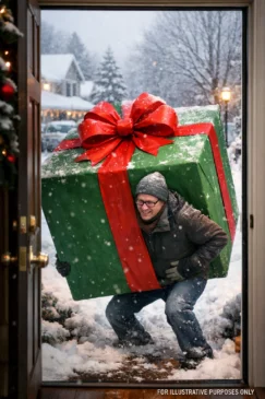 As my daughters bounced around the tree, the doorbell rang. On the porch sat a large, wrapped box with my name written neatly on the tag.