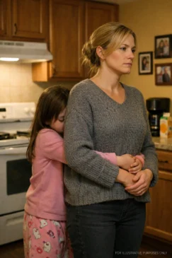 I pushed past her. Ellie sat on the edge of the oversized beige sofa, hugging her knees to her chest. She wasn’t watching TV. She was staring at the carpet.