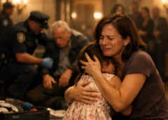 Liam looked at Lily’s cheek. The bruise was darkening. He touched it gently, his hand shaking. He looked up at the horizon where the car had vanished.